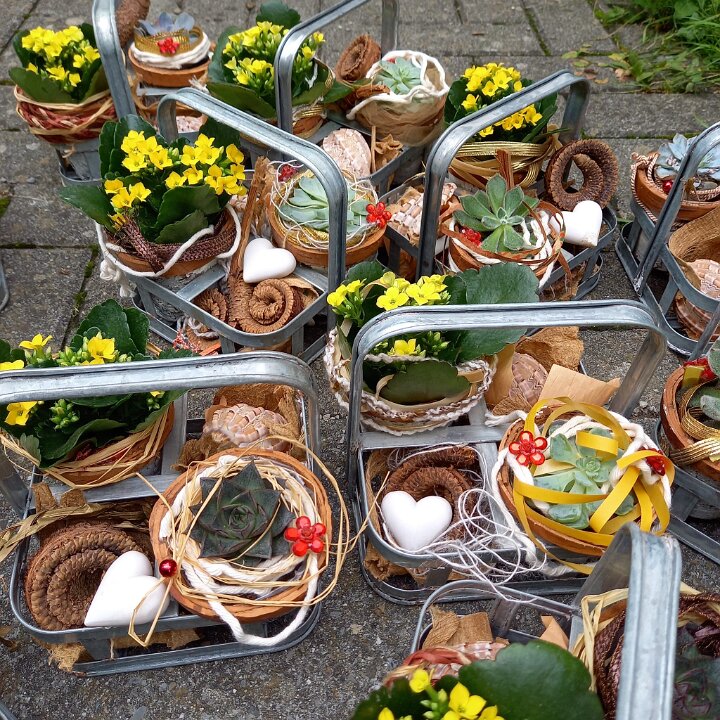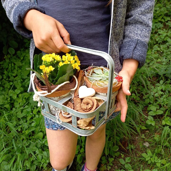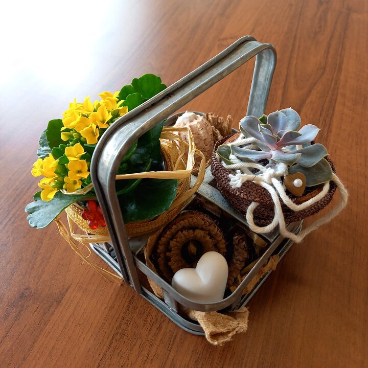 278 Bepflanztes Henkelkörbli aus Zink